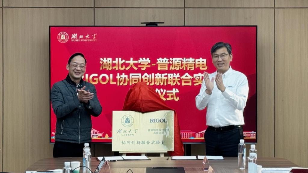 12月10日下午14:30,“湖北大学-普源精电(RIGOL)协同创新联合实验室”授牌仪式在湖北大学长江新区校区产教融合大楼A栋428会议室举行。人工智能学院党委书记万路路、副院长曾诚、杨维明、胡书山,普源精电科技股份有限公司副总裁孔祥瑞等双方代表出席了本次仪式。