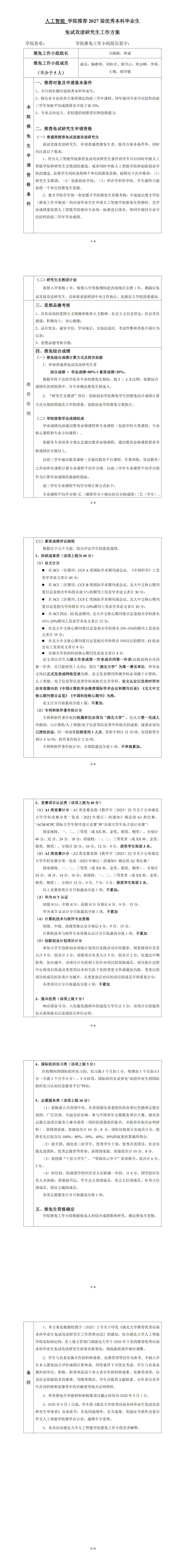 人工智能学院推荐2027届优秀本科毕业生免试攻读研究生工作方案