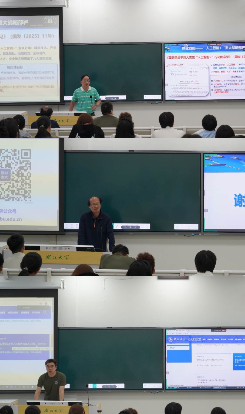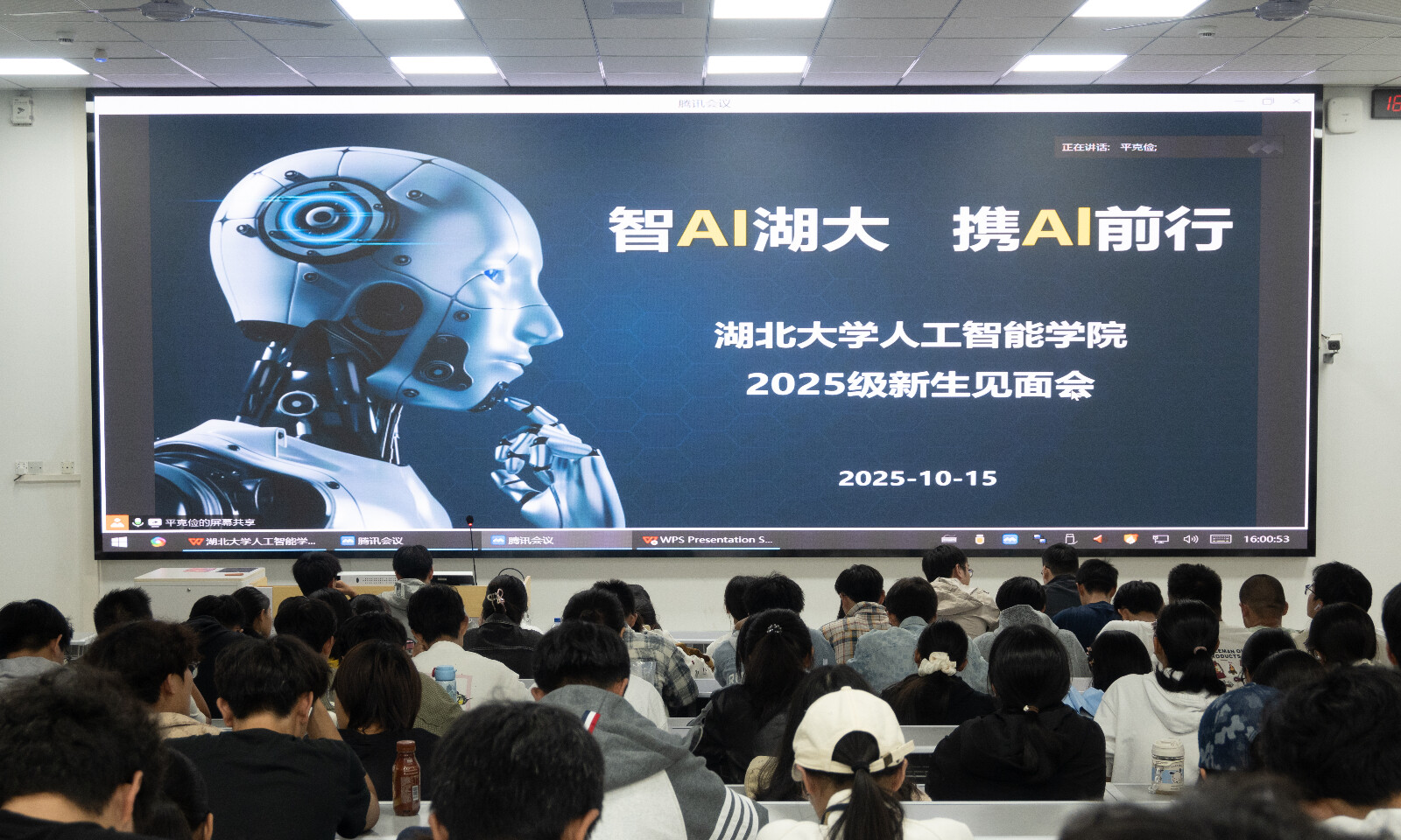 2025年10月15日下午,湖北大学人工智能学院2025级本科新生专业教育暨师生见面会以双会场同步直播形式在问津楼顺利召开。学院党委副书记田牧主持会议,创新创业学院与楚才学院院长夏晓红,人工智能学院副院长曾诚、杨维明,信息与通信工程系主任李璋,2025级新生班主任及辅导员出席会议。